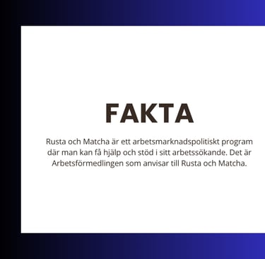 Perioden 2021-2025: Insamling och analys av data som berör min hälsa efter sjukdom för att hitta vägar framåt som leder tillbaka till arbetsmarknaden. Gått Rusta och Matcha programmet under 2 år. Det ledde till ökade kunskaper om arbetsmiljö, hur man söker arbete och starta eget företag.