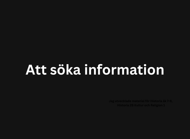 Eleverna kommer nu in i en fas där de ska söka information och kunskap om det område som de har valt att arbeta med i sina respektive grupper. Via ett kollaborativt dokument som läraren skapar i molntjänsten som alla elever kan se ska eleverna kunna dela med sig av länkar som är av intresse för arbetsområdet till varandra.
