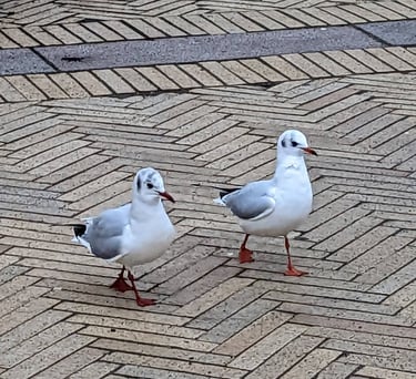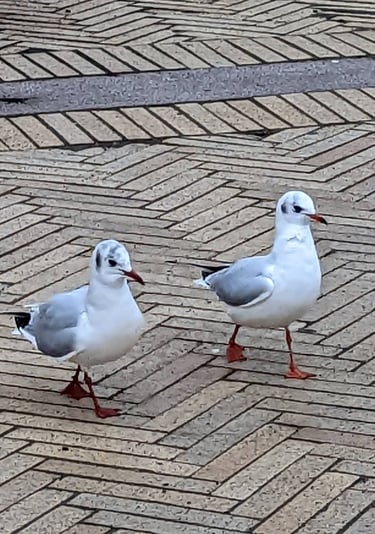 Bilden på måsarna på promenad är tagen nere i Helsingborg city på väg till en träff inom ramen för en arbetsmarknadspolitisk insats. Den kunde tas i ögonblicket tack vare smartphones.